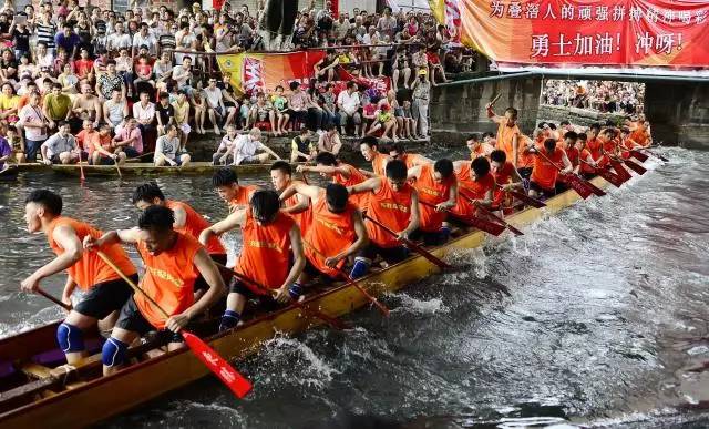 賽龍舟,是端午節(jié)的主要習俗。相傳起源于古時楚國人因舍不得賢臣屈原投江死去,許多人劃船追趕拯救。他們爭先恐后,追至洞庭湖時不見蹤跡。之后每年五月五日劃龍舟以紀念之。借劃龍舟驅散江中之魚,以免魚吃掉屈原的身體。在急鼓聲中劃刻成龍形的獨木舟,做競渡游戲,以娛神與樂人,是祭儀中半宗教性、半娛樂性的節(jié)目。后來,賽龍舟除紀念屈原之外,在各地人們還付予了不同的寓意。
