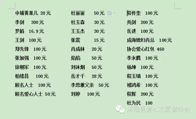 濟(jì)陽縣愛心志愿者協(xié)會(huì)愛心賬號: