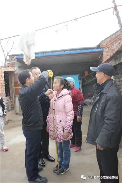 為了能給孩子們送上更合身的衣服,會(huì)長(zhǎng)們帶了米尺親自為樂樂測(cè)量身高