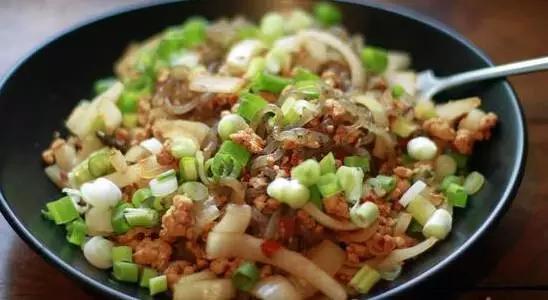 食材:魔芋絲隨意(魔芋絲卡路里趨于零),火雞胸絞肉(雞胸絞肉也可)120克,豆瓣醬大約50克,洋蔥半個,蔥適量