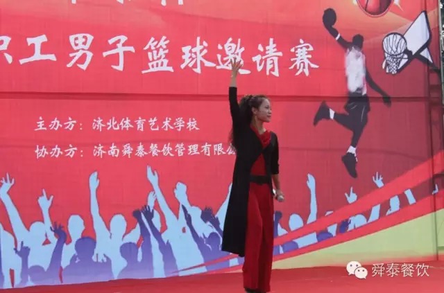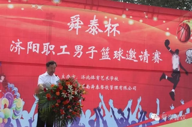 2015年7月25日上午九時,由濟北體育藝術(shù)學(xué)校主辦、濟南舜泰餐飲管理有限公司協(xié)辦的“舜泰杯—2015濟陽職工男子籃球邀請賽”如期拉開帷幕。濟陽電視臺主持人王璇璇宣布本次活動的意義和比賽事宜。