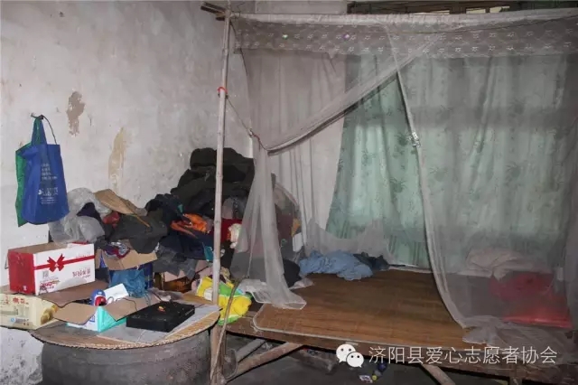 馬光超父親因車禍死亡,母親精神有問題并已改嫁,由八十多歲的爺爺奶奶及姑姑照顧。家里空空如也,空曠的院落、陳舊的家具和頹圮濕漉的墻壁、極度困難的家庭情況,愛心會(huì)員看了心里有些心酸。